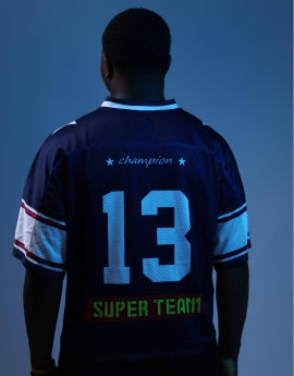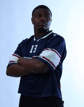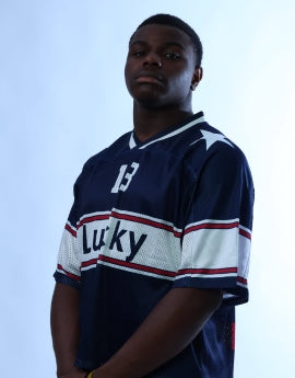 Designed in Arcstrong’s signature performance-meets-streetwear style, the jersey fuses breathable mesh fabric with bold detailing that stands for strength, luck, and loyalty. The navy and white base is cut with striking red striping and finished with the iconic 13 + “Lucky” insignia, symbolizing both battle scars and victories.