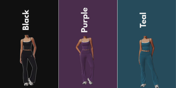 This stylish black set includes a ruched crop top paired with flare pants, crafted to enhance your silhouette and ignite your energy. Perfect for both workouts and casual outings, the Phantom Flame Duo combines a bold appearance with moisture-wicking fabric, empowering you to move confidently and express your unique style.