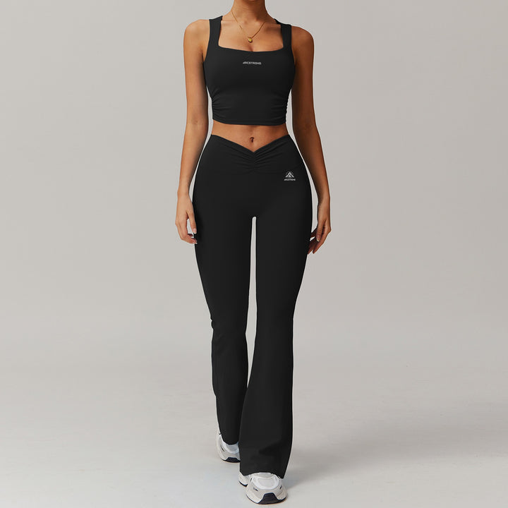 Designed for comfort and movement, the Core Flex Set features a ruched crop top and flare pants that move with you through every workout or casual day. Made from soft, stretchy fabric, this set offers a flattering fit with breathable support, perfect for staying active while looking effortlessly stylish.